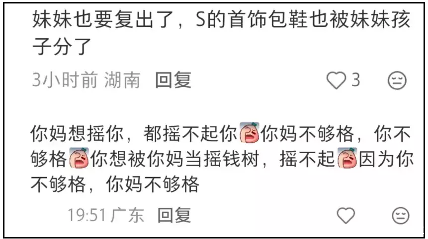面对小S女儿时装周热搜,网友一边吐槽她们强行营销,一边质疑她们霸占大S遗产,再也不吃S家炒作套路了。